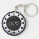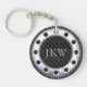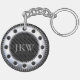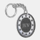Ce porte - clé sophistiqué dispose de rayures modernes, élégantes, noires et grises et d'un monogramme facilement modifié à l'intérieur d'un rivet.