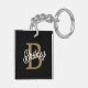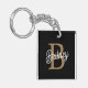 Le moderne Elegant Monogram Name Black Gold Script Porte - clé combine une base noire élégante avec un script doré luxueux pour présenter votre monogramme et votre nom. Ce porte - clé ajoute une touche de sophistication à vos objets de base de tous les jours, offrant à la fois un accessoire pratique et élégant. L'élégant script or se distingue par son arrière - plan noir, ce qui en fait un cadeau personnalisé parfait ou un ajout chic à votre propre porte-clés.