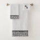 Motif moderne monogramme et peau léopard sur le socle de bain gris argent.