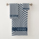 Moderne Monogramme Marine Bleu et blanc Motif Serviette de bain Set Serviette de bain personnalisée en bleu marine et blanc rayé design motif avec une ligne de texte monogramme en lettres de blocs blancs. Rafraîchissez votre décor de bain pour le printemps, l'été, l'automne, l'automne, l'hiver. Fait un grand cadeau personnalisé pour Noël, anniversaire, et plus encore. Vous pouvez transférer cette conception sur n'importe quel produit Zazzle. Si vous avez besoin d'aide pour le transfert, envoyez-nous un courriel à reviva.designs@gmail.com . REMARQUE : SEULEMENT CHANGER LES ZONES MODÈLES NÉCESSAIRES! 😀 Si nécessaire, vous pouvez supprimer le texte et commencer à ajouter le texte et la police que vous voulez. 📌 Si vous avez besoin d'une personnalisation plus poussée, cliquez sur le bouton "Cliquez pour Customiser plus loin" ou "Customiser ou modifier la conception" et utilisez notre outil de conception pour redimensionner, faire pivoter, modifier la couleur du texte, ajouter du texte et bien plus encore.