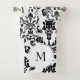 Elégant motif noir damassé sur arrière - plan blanc avec monogramme.
