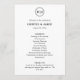 Ce programme de mariage simple mais élégant présente un design monogramme moderne en noir. Ajoutez votre texte personnalisé à l'aide du formulaire modèle. Utilisez les menus d'édition avancée, accessibles en choisissant "customiser plus loin" en bas du modèle, pour modifier les couleurs, la police et la disposition.