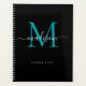 Monogramme moderne Black Turquoise Green Girly Elégant Script Nom 2021 Planificateur