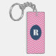 Porte - clé monogramme moderne et élégant avec motif en fer rouge rose chaud avec étiquette ronde bleu marine. Ce sera parfait comme un cadeau personnalisé. Ce design est disponible dans une variété de couleurs et de produits.