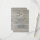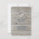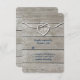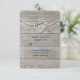 Une corde blanche attachée dans un coeur et marine et blanc, orne ce RSVP sur un arrière - plan en bois blanchi au soleil, le rendant parfait pour le mariage à thème nautique.