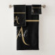Design élégant classique de salle de bain de luxe avec noir et or avec monogramme. Le modèle a été configuré, vous n'avez donc qu'à ajouter votre nom pour compléter la conception. Accessoires correspondants en magasin.
