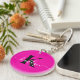 Ce porte - clé rose chaud moderne avec votre prénom dans une police de script tendance en blanc et votre première initiale dans une police de casquette moderne en noir est parfait pour vos clés. Design, moderne et très classique.