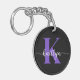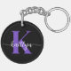 Ce porte - clé noir moderne avec votre prénom dans une police de script tendance en blanc et votre première initiale dans une police de casquette moderne en violet est parfait pour vos clés. C'est design, tendance et pourtant très classique.