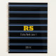 Personnalisez le monogramme or gras, ou nom, et 2 lignes de texte avec des lignes bleues sur arrière - plan noir.