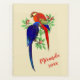 De mignons perroquets souriants assis sur une branche fleurie avec des feuilles verts. Couleurs vives, bleu électrique, rouge, orange, vert, turquoise, beige. Nom personnalisé, police manuscrite tendance, rouge. Coloré, mignon, frais, amusant. Un grand cadeau personnalisé pour tous ceux qui aiment les oiseaux. L'oeuvre est basée sur une impression japonaise vintage.