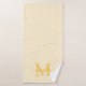 Ajoutez une touche d'élégance à votre salle de bain avec cet ensemble de serviettes de bain personnalisées avec un monogramme. Avec un fond rayé jaune clair et blanc, chaque serviette est personnalisée avec votre initiale de monogramme et votre nom dans une police de caractères fantaisie pour un look intemporel et féminin.
