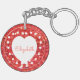 Ce porte - clé est muni d'un arrière - plan bokeh de parties scintillant corallienne avec un point encerclé centre du coeur blanc et un monogramme de prénom et lettre initiale. Personnalisez les champs de texte avec un prénom ou un nom et une initiale, supprimez un texte ou les deux, ou cliquez sur personnaliser pour sélectionner un style, une taille et une couleur de type que vous préférez. Le changement de texte se produira de part et d'autre.