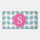 Ce mignon tapis de bureau est doté d'un motif de tortues de mer aquarelles dans les tons bleu turquoise avec un monogramme personnalisable sur rose vif. Une idée de charme pour la décoration des dortoirs ou des chambres d'université. Oeuvre et design de Victoria Grigaliunas. Pour voir des bureaux tropicaux personnalisables pour le retour à l'école, visitez www.zazzle.com/dotellabelle