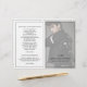 Programme funéraire plié simple mais élégant avec votre photo préférée du défunt sur la couverture avec son monogramme, son nom, la date de naissance et la date de décès. Le dos a un modèle pour vous d'ajouter un poème ou une citation et des remerciements. L'intérieur a la nécrologie, l'ordre de service et la prière. Tout le texte est noir sur un arrière - plan blanc et peut être modifié à n'importe quelle couleur en cliquant sur le bouton "personnaliser". Ce programme plié peut être utilisé pour des funérailles, un service commémoratif ou la célébration de la vie.