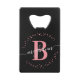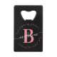 Féminin, moderne, élégant, minimaliste rose poudré et noir, monogramme personnalisé en blanc avec écriture du prénom, ouvre-bouteille pour carte de crédit personnalisé avec monogramme. Caractérisé par un monogramme et une écriture féminine du prénom dans une police calligraphiée manuscrite avec fioritures et un cadre en pointillés autour de votre monogramme. Cadeau féminin parfait pour petite amie, sœur, mère, anniversaire, mariage, enterrement de vie de jeune fille, fête des 16 ans, ou pour quiconque aime un style glamour élégant.