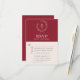 Choix classique et de bon goût dans les cartes de réponse mariages, ce design exprime une élégance simple dans sa disposition de texte et son style classique. Une simple couronne de laurier ouverte de feuilles esquissés entoure l'initiale monogramme de la mariée et du marié. Le modèle de texte élégant et simple propose des choix de repas que vous pouvez personnaliser avec vos entrées désirées. Cette carte de réponse est un choix polyvalent pour les mariages à n'importe quelle saison de l'année et pour n'importe quel lieu mariage, qu'il s'agisse d'une cérémonie religieuse solennelle ou d'une affaire de type laïque dans une salle de banquet, un vignoble, un musée, un restaurant, un club privé ou un mariage rustique à l'extérieur dans la nature. Il est disponible dans une variété de couleurs populaires (montré ici dans le rouge rustique et l'écru) ainsi que de nombreux types de papier et de poids différents.