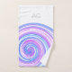 Une serviette de plage personnalisée, simple et élégante, avec un tourbillon de bleu et de violet.