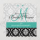 Invitation à la douche nuptiale Turquoise Damask Monogramme.com et WhiteWhimsicalWeddings.blogspot.com. Customisez avec vos noms monographiques et couleurs mariages. Ajoutez toutes vos informations mariages au verso de la carte en utilisant les invites de menu faciles à utiliser de Zazzle. Conception par Elke Clarke ©2011. Graphiques sous licence pour utilisation commerciale