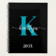 Ce planificateur simple et élégant noir 8,5 x 11 avec votre prénom dans une police de script tendance en blanc et votre première initiale dans une police casquette moderne en turquoise est parfait pour vous. C'est design, tendance et pourtant très classique. Il facilitera la tenue des rendez-vous, des réunions, des échéances, des devoirs, afin de suivre et de simplifier votre vie.