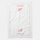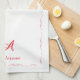 Design front features a large, bright red initial displayed in center above name. Design is framed by a coordinating bright red flourish and displayed against a white background.