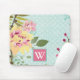 Monogrammm | Blumengarten, blauer Hintergrund Mousepad
