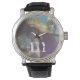 Uhr, Vintage Männeruhr mit schwarzem Lederarmband