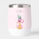 Arrière - plan rose vif et féminine décorée d'un arc rose et d'un ananas. Personnalisez et ajoutez un nom et vos initiales monographiques.