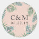 Inselchic-Aufkleber in grüner Aquarellfarbe sind die perfekte Touch für Ihre Hochzeitsfeiern oder Liebhaber. Das Design umfasst tropische Blätter aus Palmenblättern, die Ihre Initialen und das Hochzeitstag umkreisen. Ideal für Sommer, Strand oder Hochzeiten in Urlaubsort.