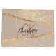 Ein elegantes Beige- und Goldgeländer, Marmor und glänzender Hintergrund. Personalisieren Sie Ihre Monogramm-Initialen und Ihren Namen und fügen Sie sie hinzu. Schwarzer Text.