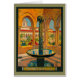 Vintage Reiseplakat für Monreale , Palermo in Italien. Farbenfroher italienischer Innenhof mit verziertem Brunnen.