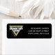 This bold Monster Jam address label design features the iconic Monster Jam logo set against a sleek black background, creating a strong and recognizable look for fans of monster truck action. The famous triangular Monster Jam emblem with metallic detailing and yellow accents stands prominently on the left side, instantly capturing the high-energy spirit of the Monster Jam arena.