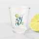 Ein tropisches Schussglas mit einem Alphabet, das mit Monstera-Blume bedruckt ist.