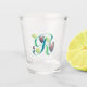 Ein tropisches Schussglas mit einem Alphabet, das mit Monstera-Blume bedruckt ist.