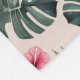Ein lebendiges Aquarellmuster mit üppigen Monstera-Blätter und rosa Hibiskus-Blume, mit goldenem tropischem Blattwerk. Ideal, um eine Touch Paradies in jedem Raum oder Produkt zu bringen.