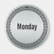 Metallische Optik in Grau- und Schwarzkreisgrafik für tägliche Erinnerungen für Zuhause oder Büro. Dieser organisierende Magnet ist für Montag.