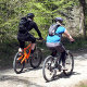VTT le long des sentiers forestiers au Pays de Galles.