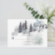 Réponses aux mariages d'hiver avec des pins et des montagnes enneigées. Le dos est un design éclaboussé d'aquarelle dans des gris, des bleus et des verts. Parfait pour un mariage à destination dans une station de ski ou une communauté montagnarde. Les cases de modèle sont faciles à personnaliser avec vos propres informations.
