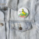 Ein Knopfknöpfchen, das mit einer hellgelben Magerlarche aus Western geschmückt ist, die auf einer Pflanze aus Sägebrush mit einer weichen, rosa bitterroot-Wildblume gezeichnet und mit Aquarellfarbe gestrichen ist. Inspiriert von der Staat Vogel und Staat Blume von Montana.