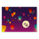 Mitte-Herbst Festival Karte mit Vollmond und farbenfrohen Himmelslaternen.