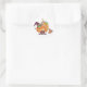 Des autocollants blancs ronds avec une illustration fantaisiste d'Halloween d'un chiot caché derrière deux citrouilles. Vous pouvez aussi voir le casquette noir et violet et les chaussures d'une sorcière ... © ArianeC Illustrations