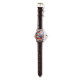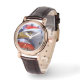 Cette montre à oiseaux. C'est une belle pièce de temps élégante avec des chiffres noirs. Drapeau américain bleu et blanc et rouge. Avec un aigle qui vole devant. vers le haut dans le ciel.