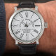 Montre élégante avec inscription pour célébrer un 30e anniversaire. Bénéficiaire a 30 ans. Inclut le nom de la personne qui a un anniversaire. Texte noir sur une face de montre blanche.