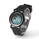 Le design de cette montre de Parties scintillant eWatchFactory est un pingouin en silhouette qui se dresse au-dessus de la scène d'îles éparpillées dans l'océan sous la Croix du Sud.