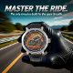 This watch face features a dynamic illustration of a custom motorcycle, engulfed in vivid orange, red, and yellow flames. The bike is rendered with intricate detail, set against a dark background, emphasizing motion and power. Silver numbers and watch hands maintain functionality, creating a bold and energetic accessory for motorcycle enthusiasts who appreciate dramatic art.