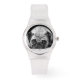 Photographie en noir et blanc d'un très adorable petit carlin aux yeux bruns âmes.