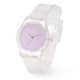 On aime l'attrait de cette montre au visage couleur chardon.