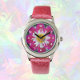 Montre élégante pour femmes avec chiffres blancs qui présente l'image d'une Collarette Dahlia rose avec des pétales intérieurs blancs et centre jaune avec un petit visiteur d'insectes. Un joli design floral ! Sélectionnez votre montre dans plusieurs styles.
