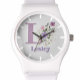 Chrétienne montre. Le design présente Monogram & Name avec Fleurs de chaque côté dans un style pastel couleur eau. L'exemple s'appelle Lesley. Changez le nom comme souhaité pour toute personne ayant un nom commençant par L.