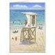 Un après-midi ensoleillé occupé, un maître nageur solitaire recherche le rivage de son poteau en bois de surveillance. : : Aquarelle originale par Barbara Bayer