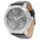 Montre avec un design abstrait cool "look métal liquide", et tourbillonnant, des formes bouillonnantes dans les tons gris argent. Peut être utilisé comme arrière - plan pour vos propres textes, images et idées. Disponible dans toutes les options de style. Veuillez noter qu'il s'agit d'une image d'art numérique imprimée, elle ne brille pas ou ne contient pas de métal réel.